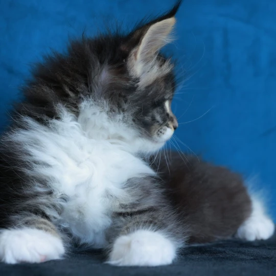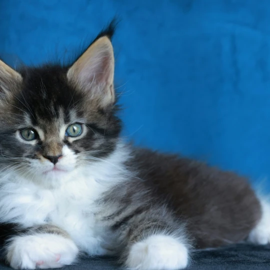 Adéli of Wild Gold Maine coon black silver mackerel tabby & white